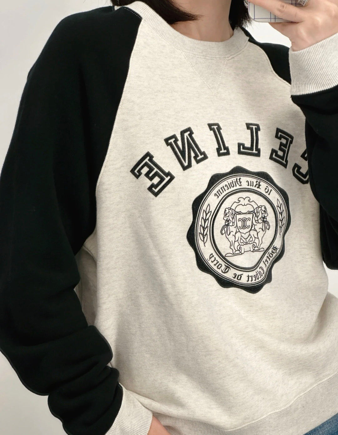 Celine Color-Block Flocked Logo Crewneck Sweatshirt – 2025FW
