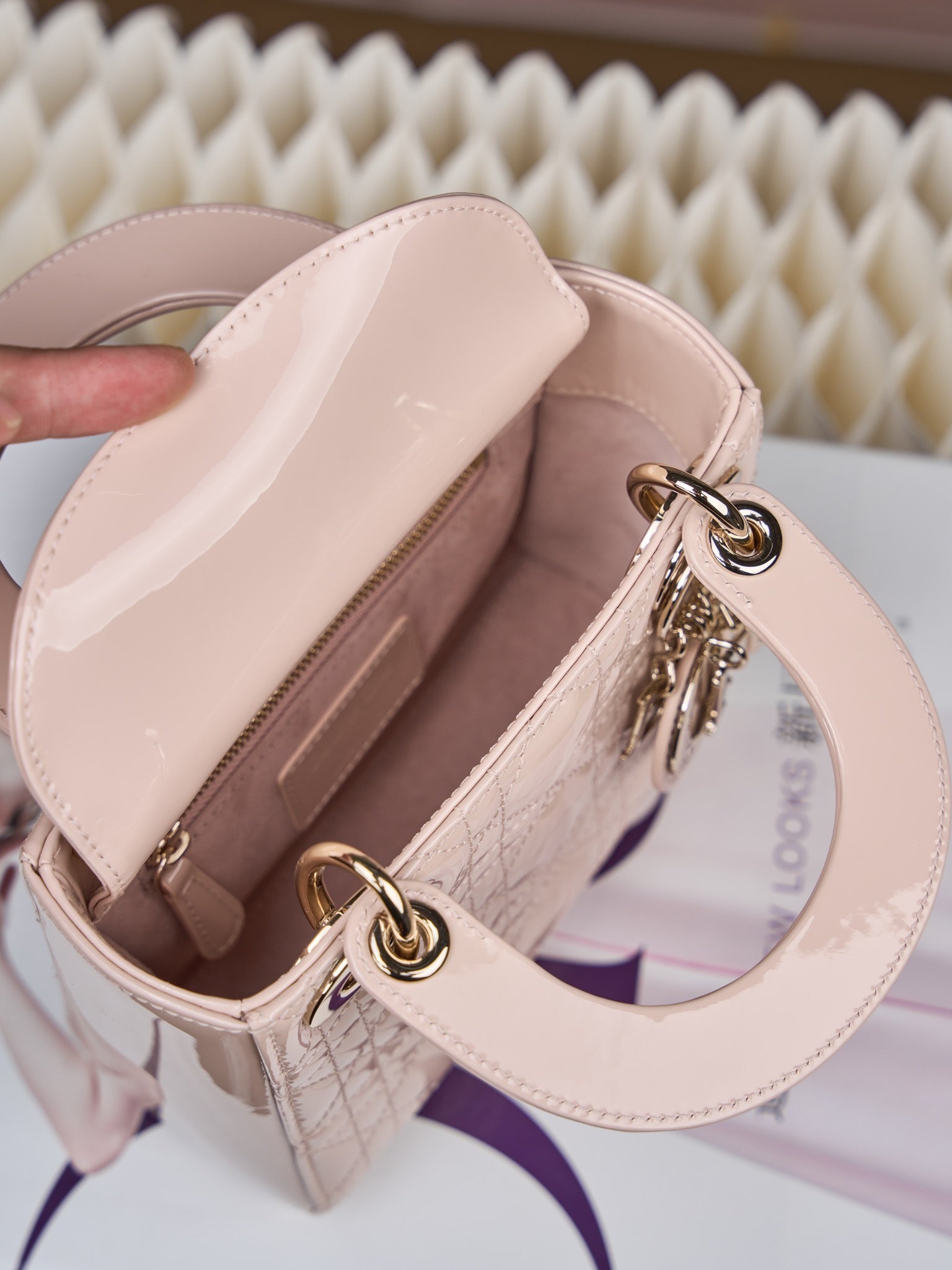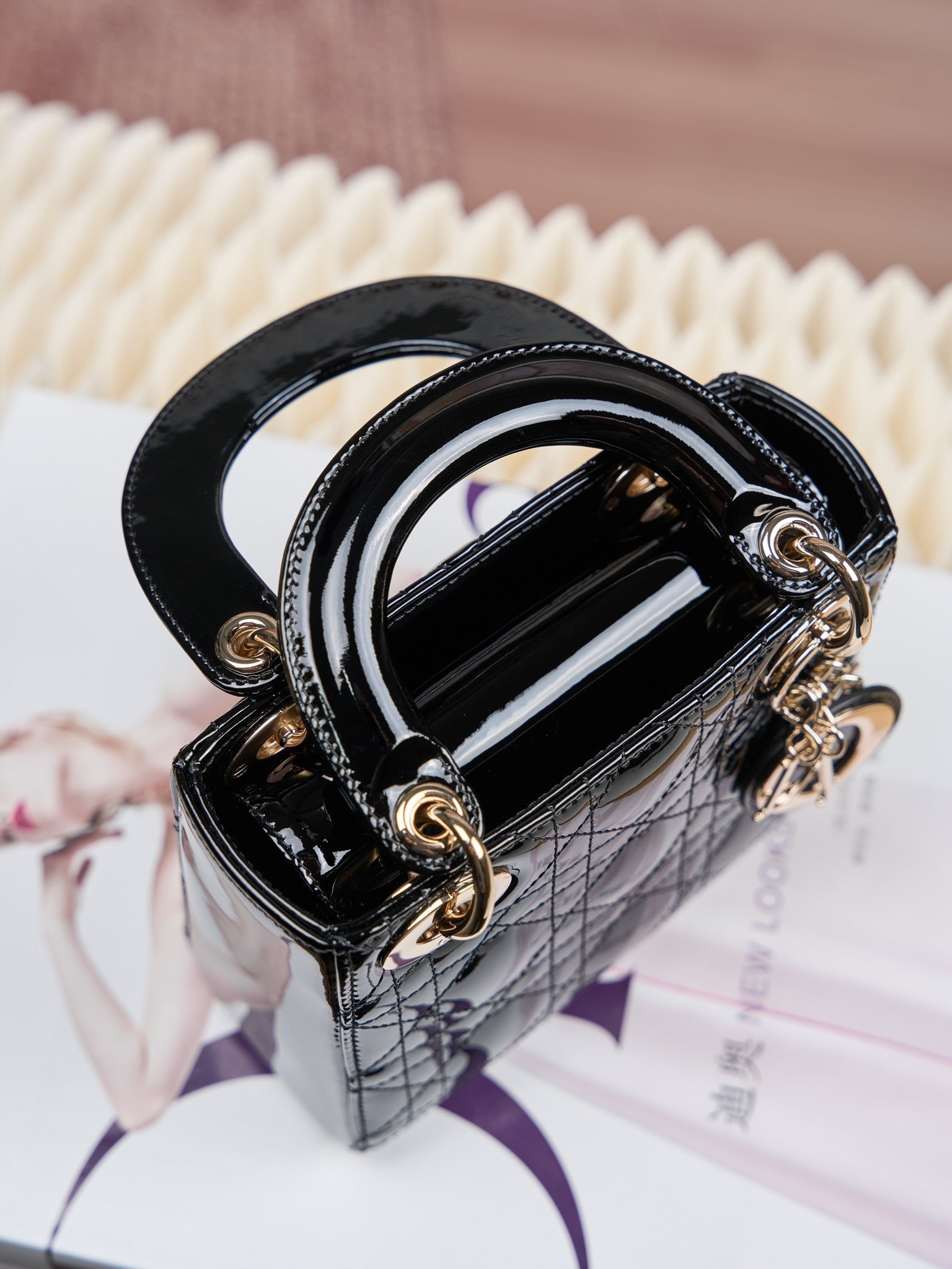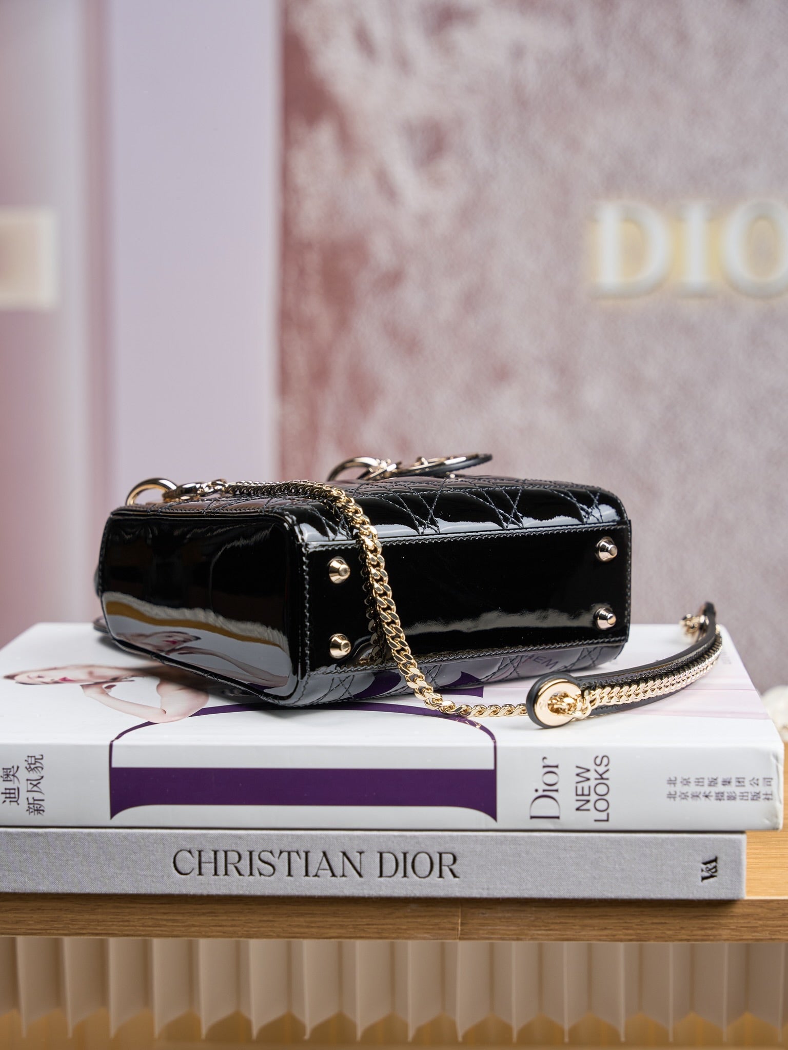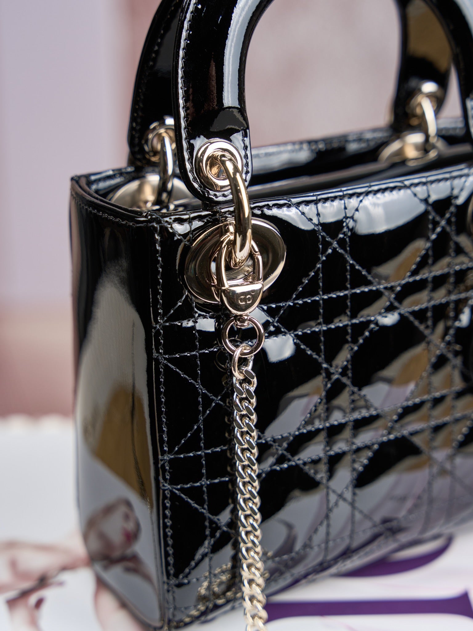 The Lady Dior handbag embodies Dior's profound vision of elegance and beauty. Crafted from exquisite patent cow leather, this piece maintains a timeless yet modern allure, reflecting superior boutique-grade craftsmanship.