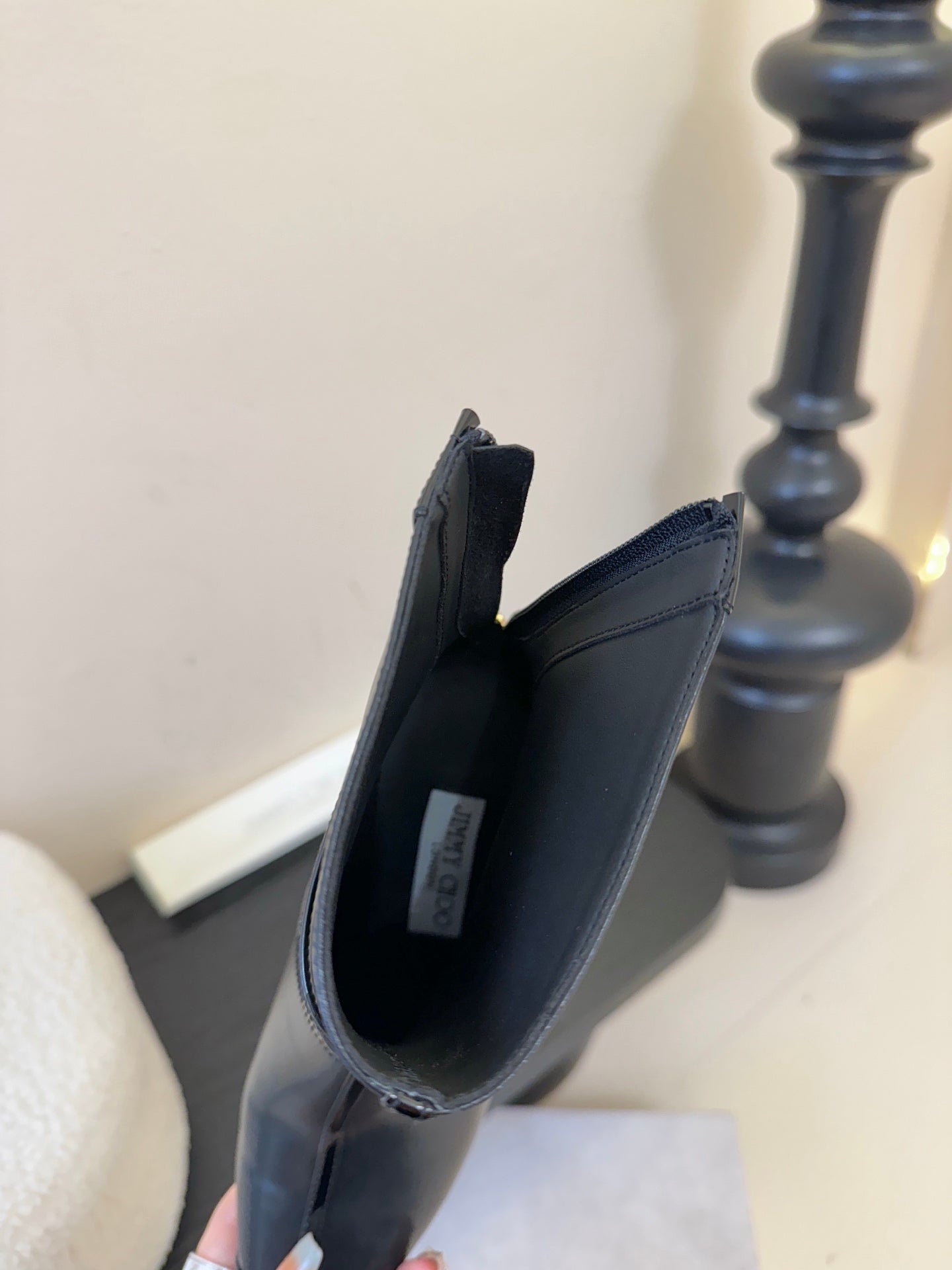 Crafted from premium cowhide and split leather, these ankle boots feature a luxurious lambskin lining and a genuine leather sole, reflecting boutique-grade craftsmanship.