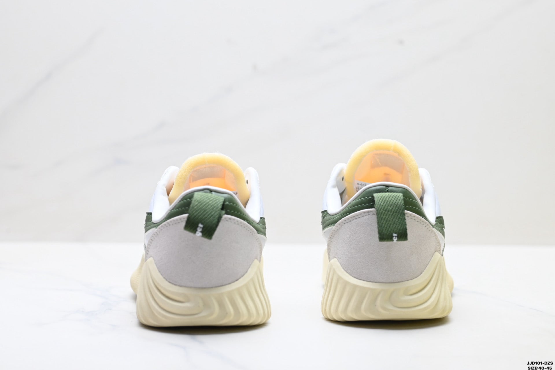 * Upper constructed from a blend of retro-feel fabric and premium leather.