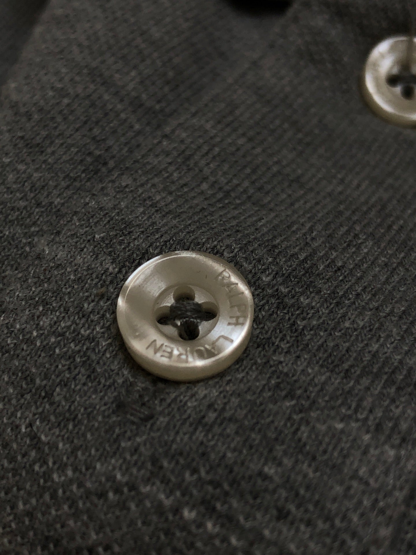 * Classic polo collar with logo-engraved buttons