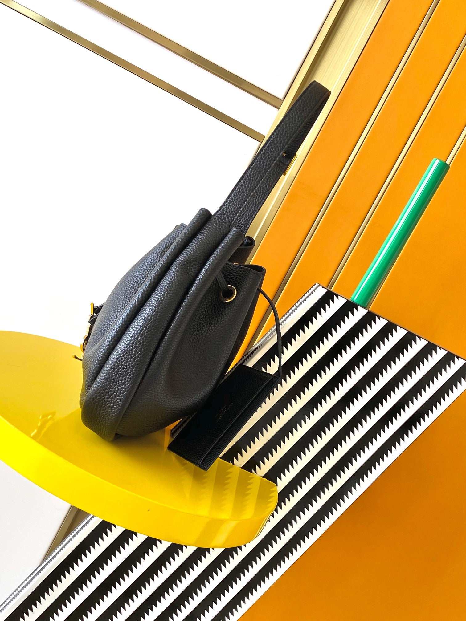 Saint Laurent Grained Leather Small Hobo Bag with Cassandre
