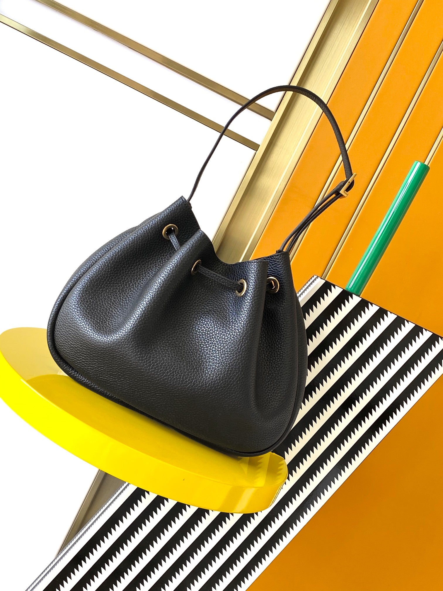 Crafted from premium grained cowhide leather, this bag features a luxurious suede lining, reflecting exceptional boutique-grade quality.