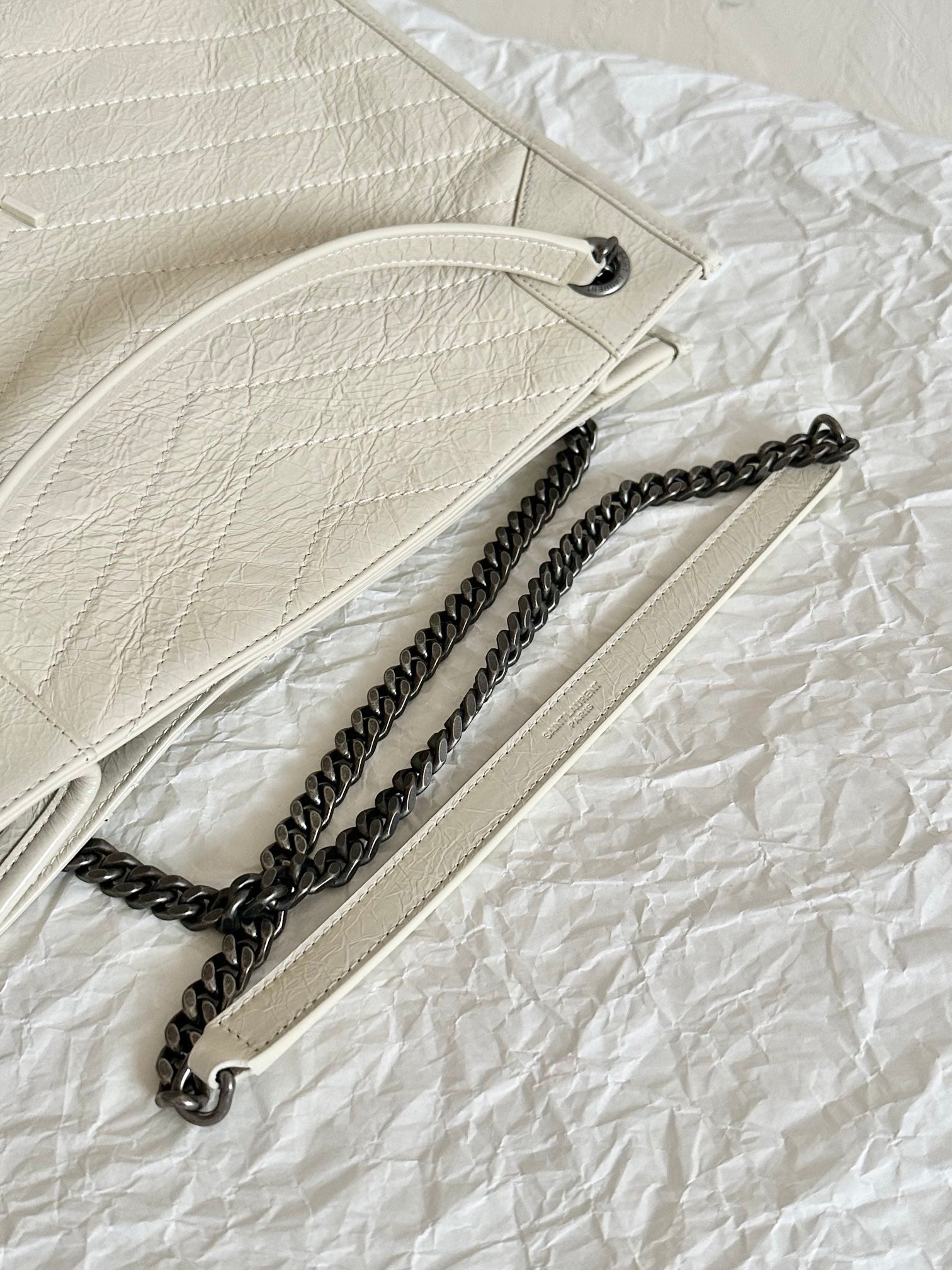 Crafted to boutique standards, this Saint Laurent Niki tote exemplifies superior design and enduring quality, making it a standout piece from the collection.
