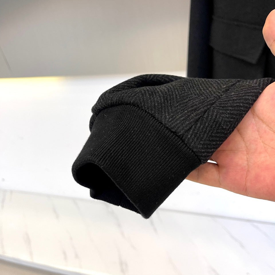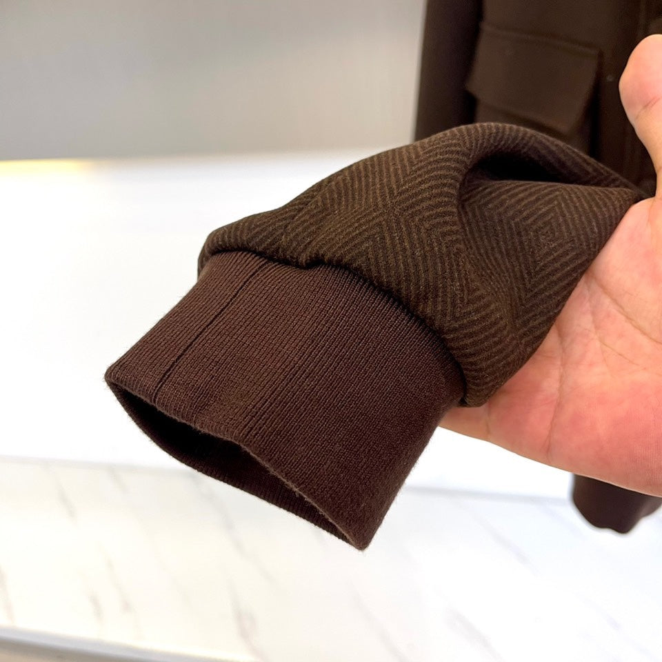 * Classic stand collar and double flap pockets, reflecting Zegna's Italian heritage.